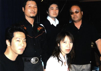 | 〈ライブ告知〉 | 〈プロフィール〉 | ●高畠博文 蠍座のA型。 ベース担当。 甲子園浜在。海を見るのが好き。「寄せては返す波を見ていると集中力がわいてくる」。 ミュージシャンとして表現力を磨くことが、当面の目標。 (写真・前列左端) |